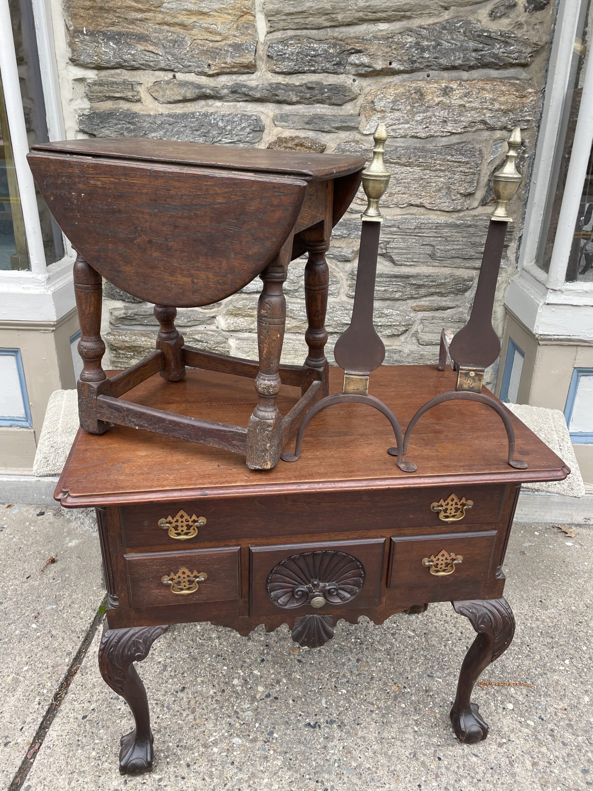 EarlySmall Table and Andirons
