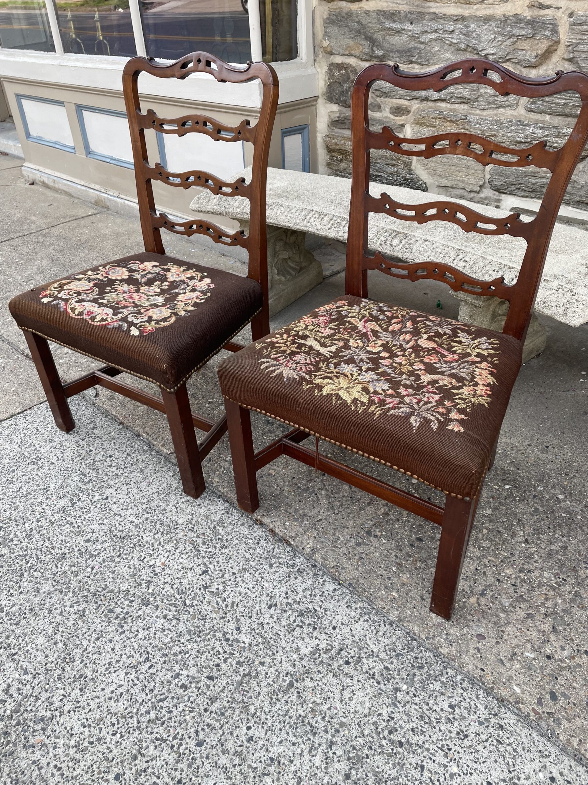 Pair of Walnut Spanish Foot Chairs. New England Circa 1760